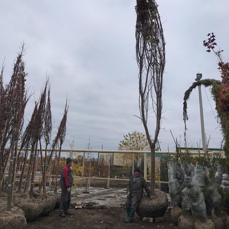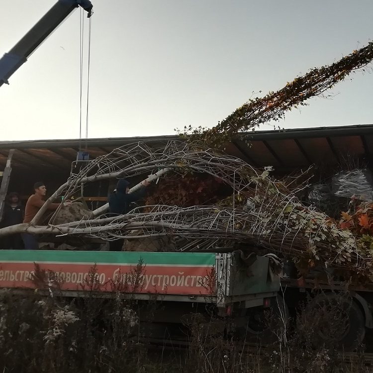 Крупномеры рекомендуется сажать зимой, когда растение в спячке. Зимой вместе с растением формируется земляной ком с прикорневой почвой, чтобы бережно сохранить прикорневую систему. Корни растения не повреждаются в смерзшейся толще земли. Оперативная доставка крупномеров с помощью длинномерных машин, максимально сокращает стресс при пересадке. После посадки деревьев наши работы на этом не заканчиваются. В течении гарантийного срока, мобильная бригада производит уход за деревьями. Борьба с вредителями, корневая и внекорневая подкормка, опрыскивание, установка растяжек - вот далеко не полный перечень мероприятий по уходу.